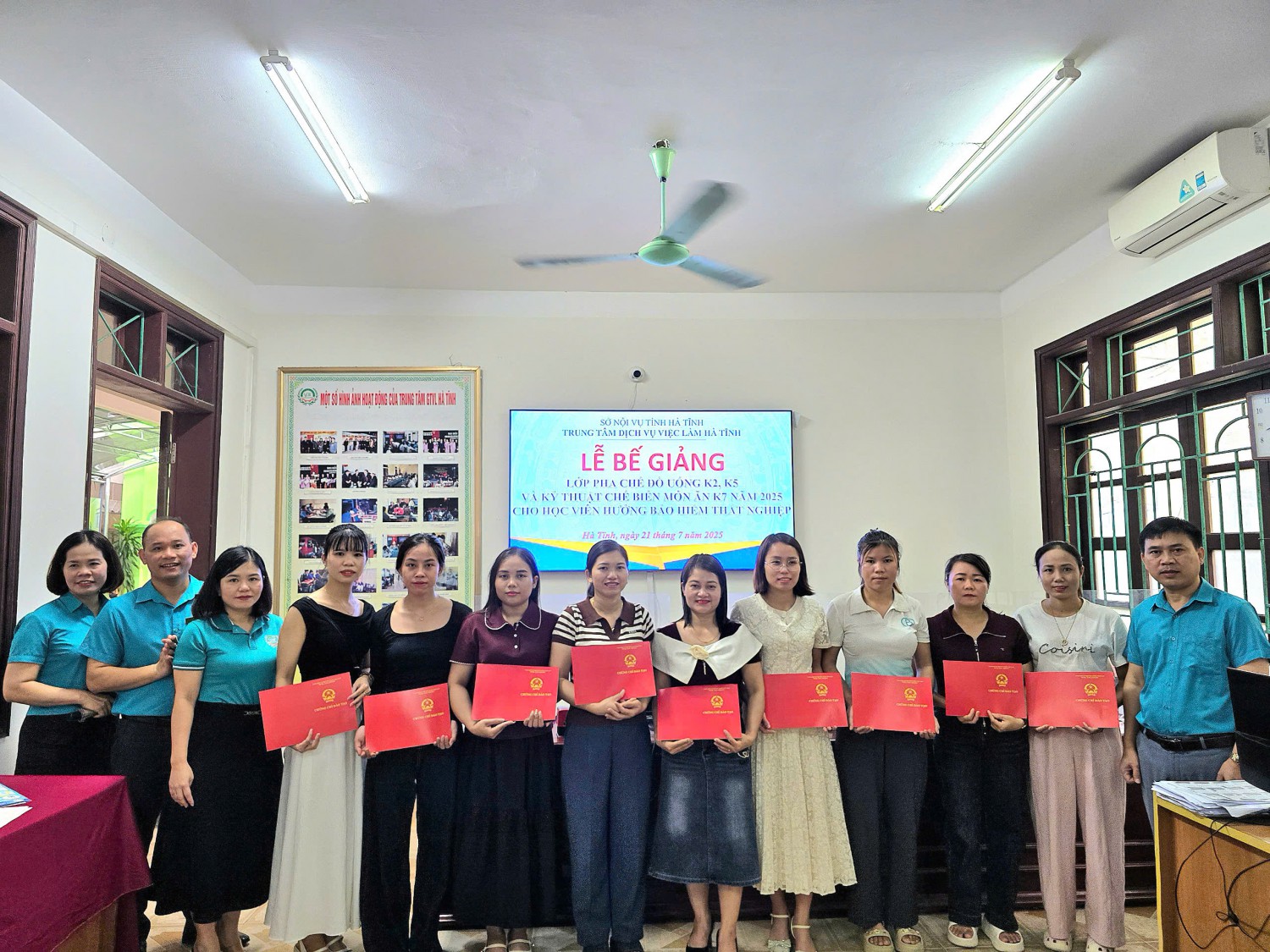 Lễ bế giảng không chỉ đánh dấu sự kết thúc của khóa học mà còn mở ra những cơ hội mới cho người lao động, khẳng định vai trò tiên phong của Trung tâm Dịch vụ việc làm Hà Tĩnh trong công tác