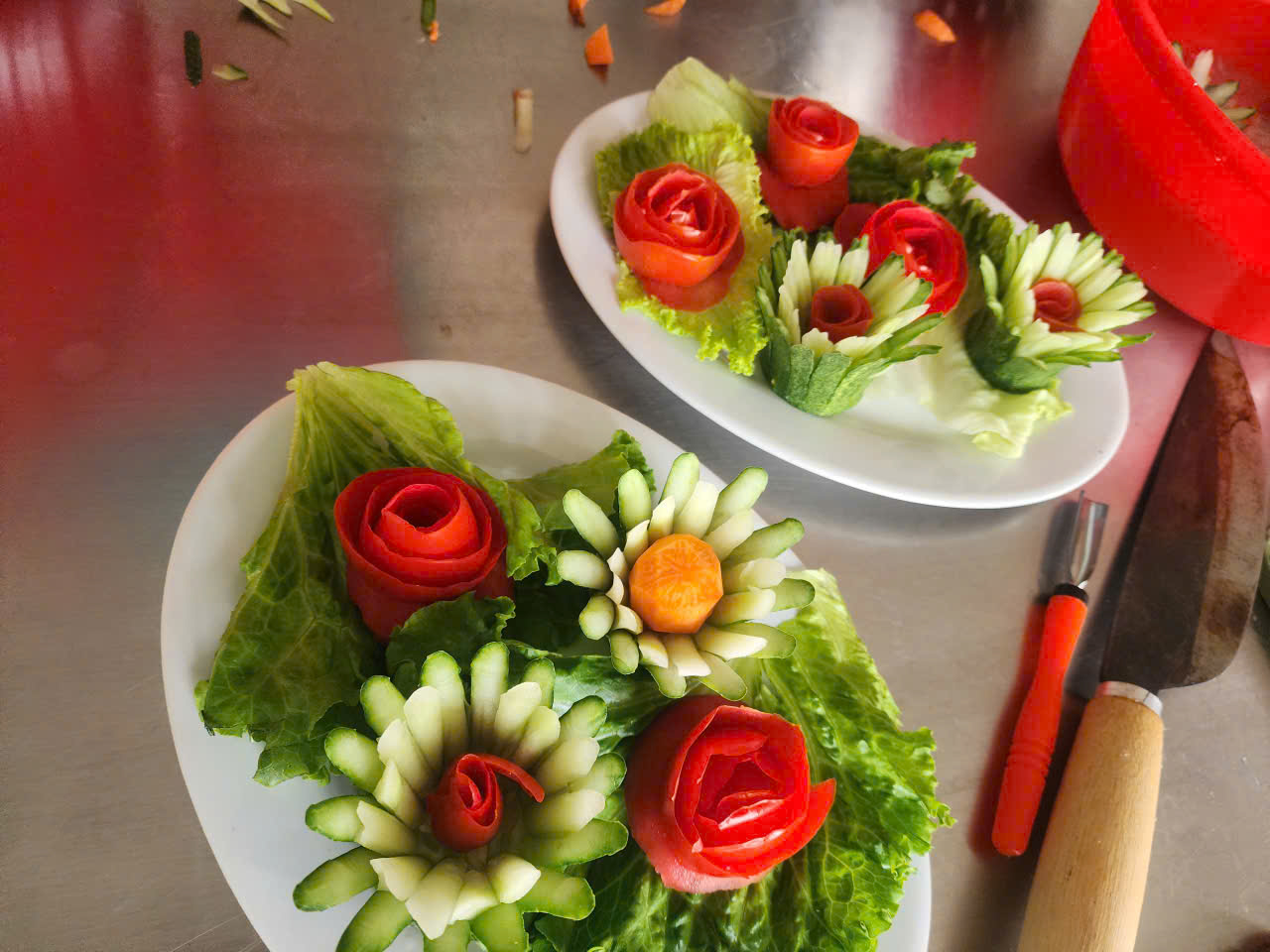 Học viên được hướng dẫn tỉ mỉ từ kỹ năng sơ chế nguyên liệu, cắt tỉa hoa quả tạo hình nghệ thuật cho đến chế biến những món ăn dân dã, quen thuộc nhưng mang tính thẩm mỹ và hương vị cao. Sản phẩm học viên tạo ra không chỉ ngon miệng mà còn đẹp mắt, thể hiện sự khéo léo và tiến bộ rõ rệt qua từng buổi học.