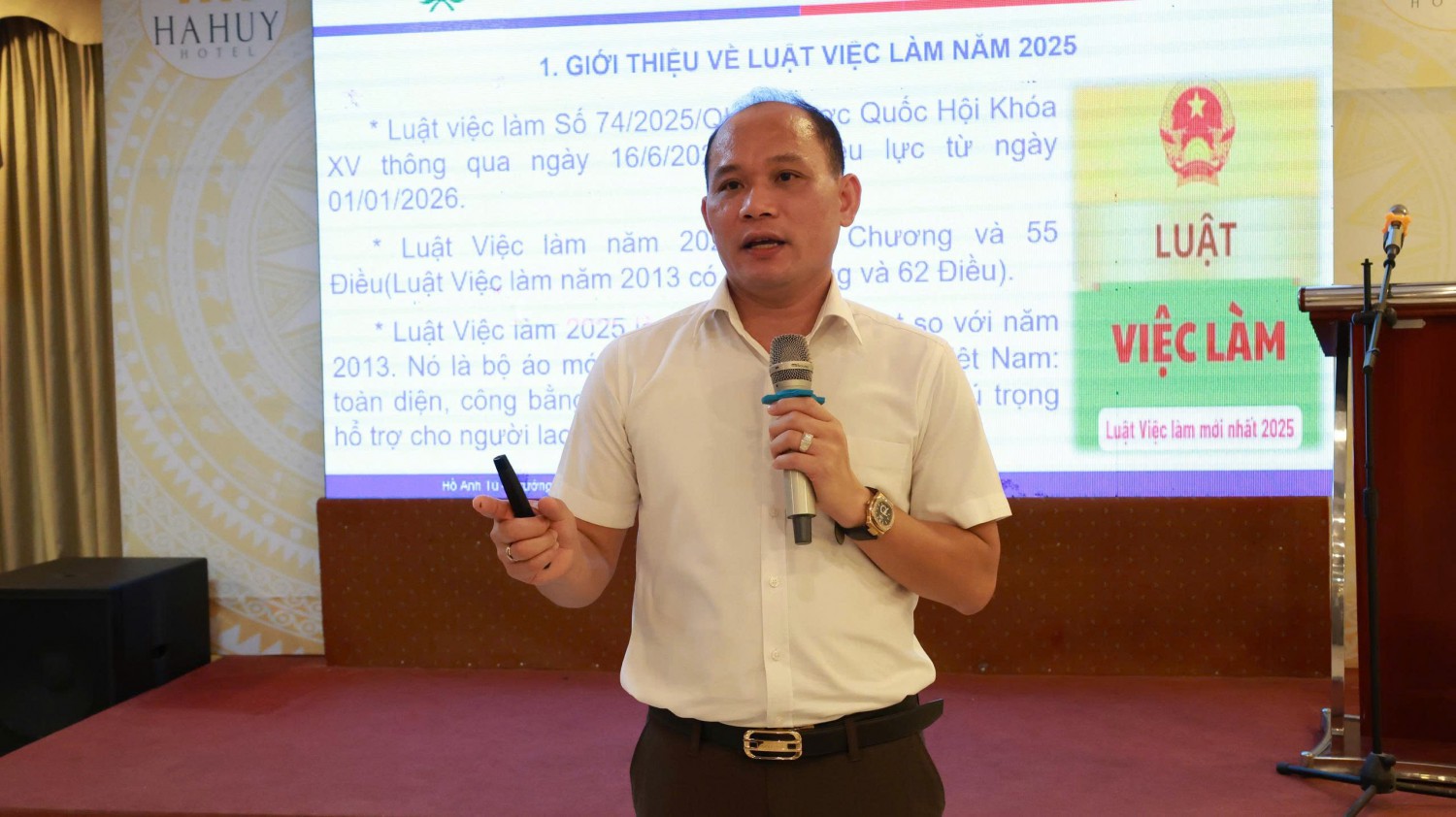 Tại hội nghị, đại biểu đã được nghe đại diện Trung tâm Dịch vụ việc làm Hà Tĩnh và Bảo hiểm xã hội tỉnh Hà Tĩnh giới thiệu những nội dung quan trọng trong 2 chuyên đề: Một số chính sách mới về bảo hiểm xã hội, bảo hiểm y tế theo Luật Bảo hiểm xã hội 2024; một số quy định mới về chính sách bảo hiểm thất nghiệp theo quy định của Luật Việc làm 2025. Đồng thời, phổ biến các văn bản liên quan đến nội dung về hỗ trợ doanh nghiệp trong công tác tuyển dụng thông qua sàn giao dịch việc làm...