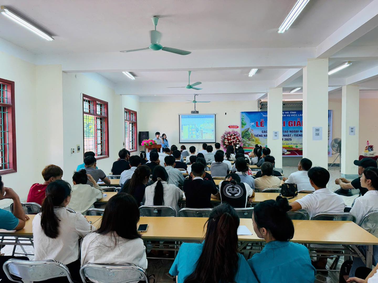 Chiều ngày 05/7/2025, tại Sàn Giao dịch Việc làm Kỳ Anh đã long trọng tổ chức Lễ khai giảng các lớp học ngoại ngữ (tiếng Hàn, tiếng Nhật, tiếng Trung) với sự tham dự đặc biệt của: