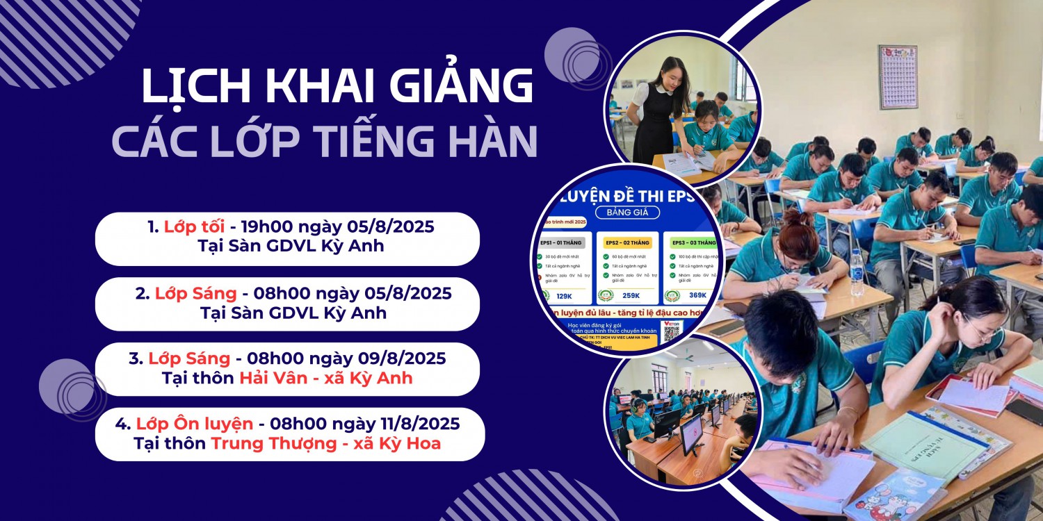 📣Thông báo lịch khai giảng các lớp học tiếng Hàn - Tháng 8/2025